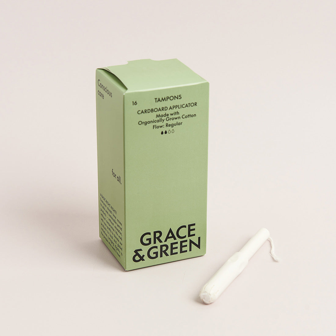 Made with certified organic cotton for total confidence and comfort. Designed for every body with minimal impact on the planet, the Grace & Green tampons are free from synthetic dyes and fragrances. The biodegradable cardboard applicator provides smooth, easy insertion.